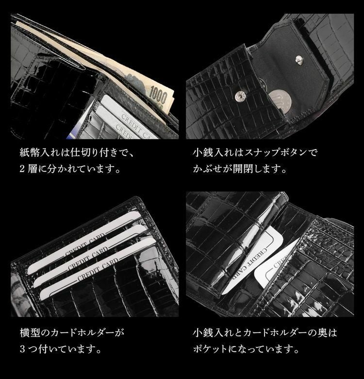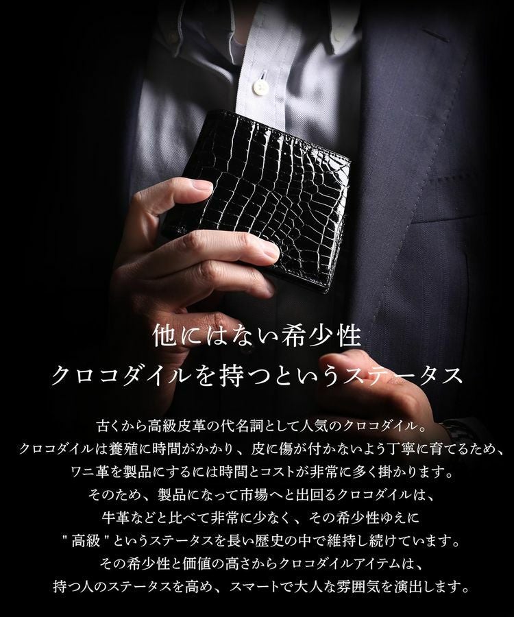 他の画像を見る exotic leather 折り財布 クロコダイル 日本製 二つ折り 財布 メンズ シャイニング 加工 一枚革 無双 小銭入れ付き ¥ 52,800 税込 (0件) お気に入りに登録する