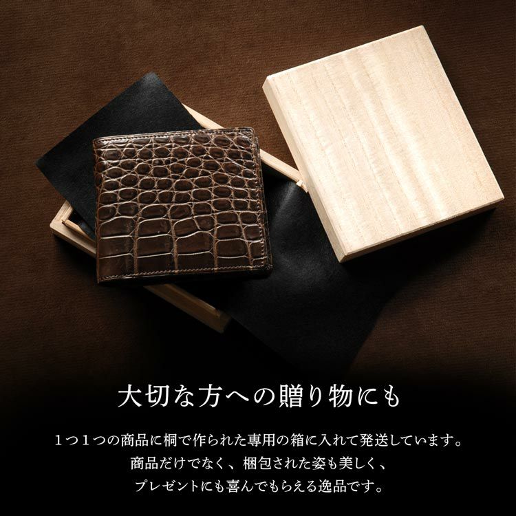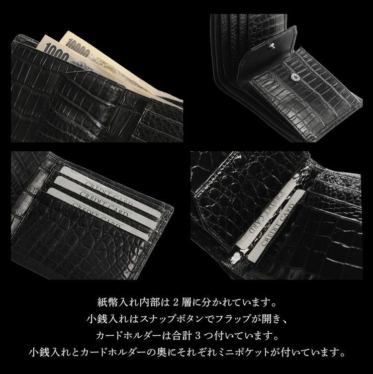 ※キーワード: クロコダイル財布 メンズ財布 本革財布 鰐革 二つ折り財布 プレゼント ギフト ブラック 黒 ダークブラウン 国産 JRA