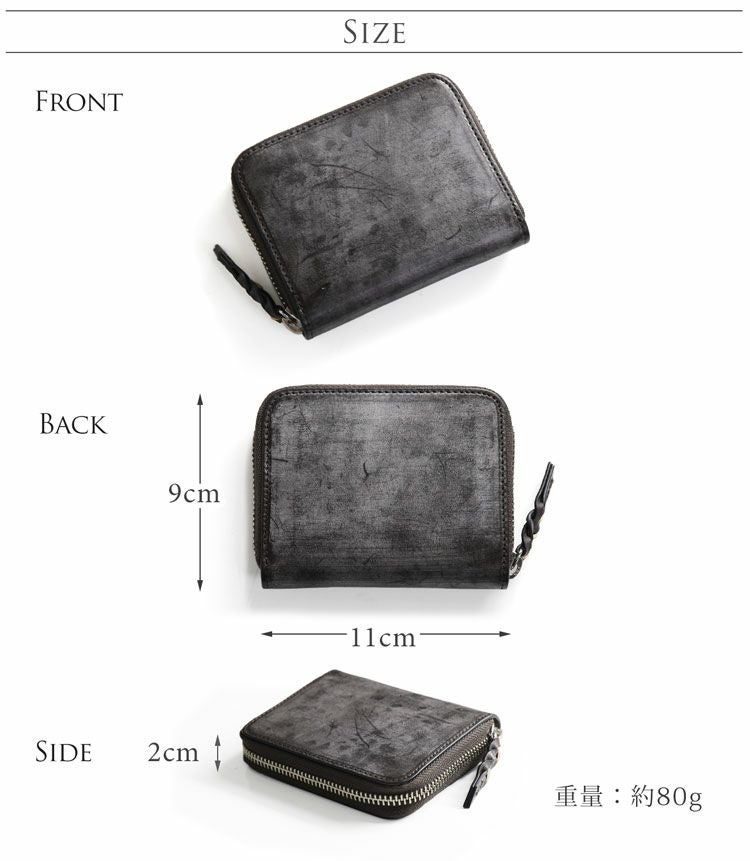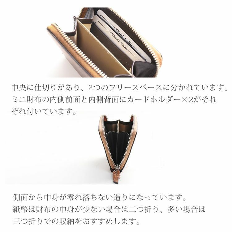 エイジングにより美しく表情を変える革を楽しみながら使えるミニ財布です。