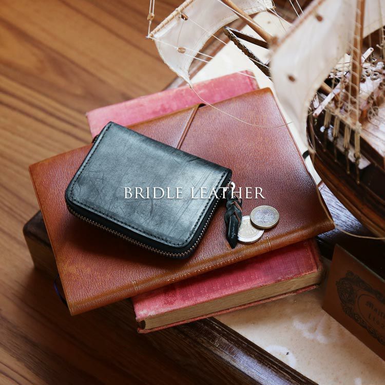 革の本場、イタリアのトスカーナで鞣したブライドルレザーのコンパクト財布です。