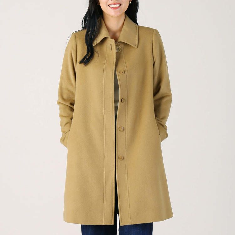 ベーシックなデザインで使いやすい、カシミヤ100%のステンカラーコート。