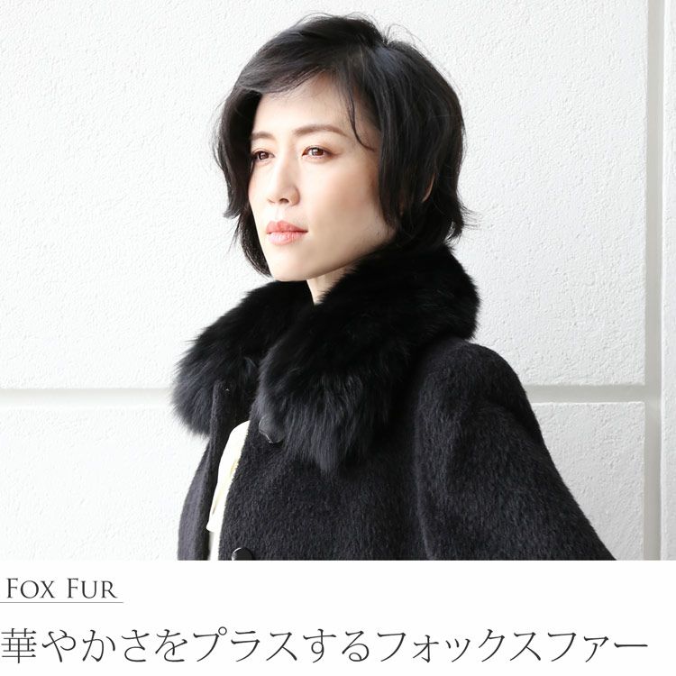 | 商品名:日本製 スーリー アルパカ コート ロング フォックス ファー トリミング ステンカラー 比翼仕立て 秋冬 レディース ダークグレー/ブラック |