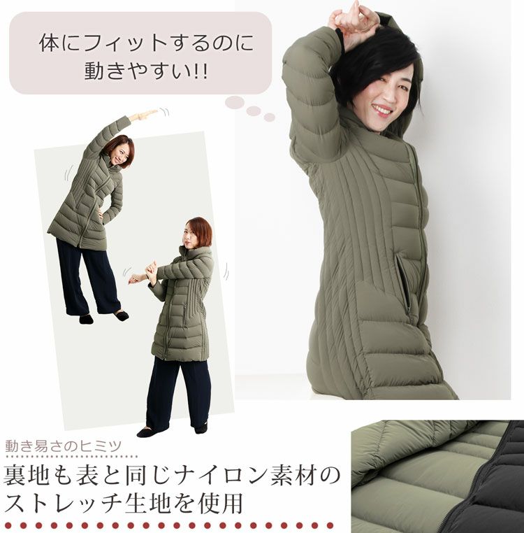ダウンコート レディース 軽量 4WAY ストレッチ生地 ダウン90% Filomo 7F