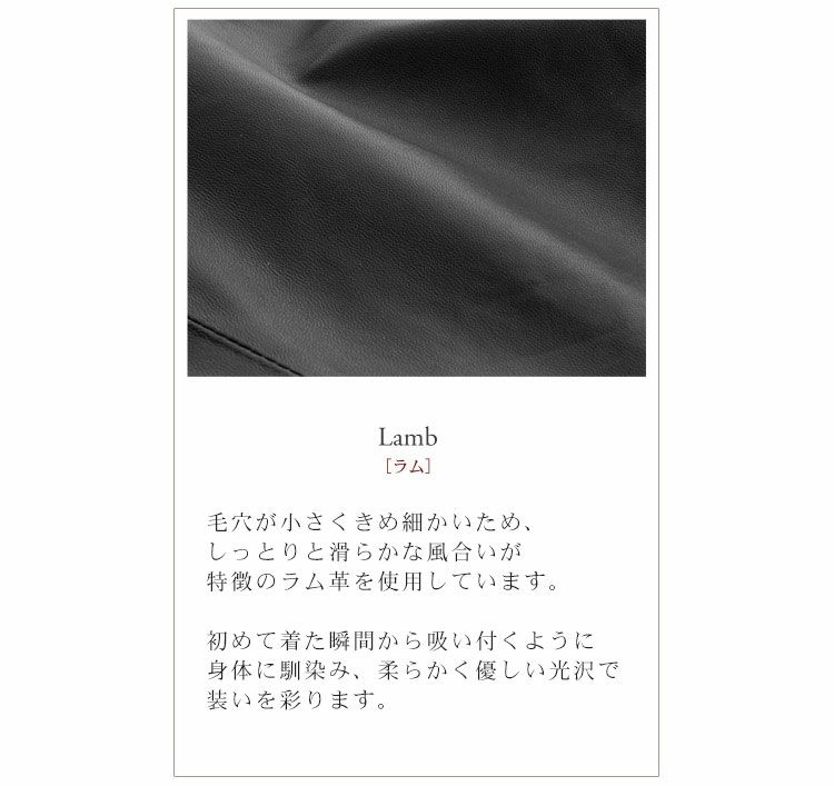 軽やかな着心地のラムレザー(羊革)を使用しています。