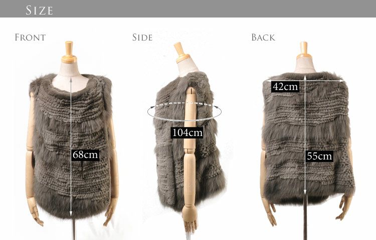 着丈(前)約68cm、着丈(後ろ)約55cm、胸周り約104cm、肩幅約42cm