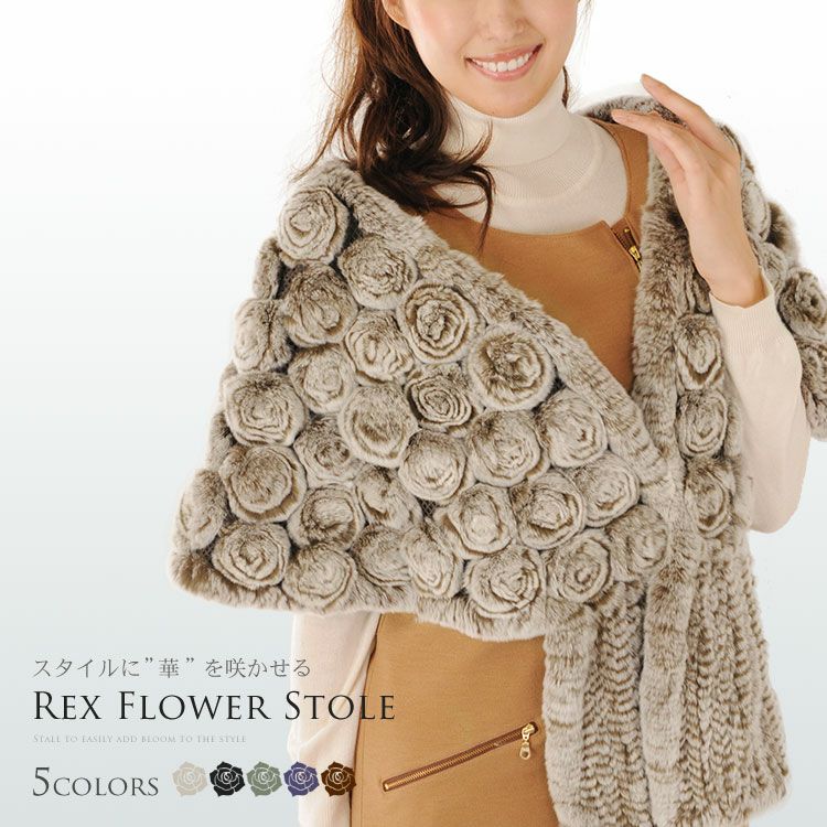 レッキス ケープ ストール フラワー デザイン/レディース 毛皮 ファー ストール 花 お花 羽織りもの カジュアル シック アウター 毛皮 大判 母 女性 プレゼント ギフト