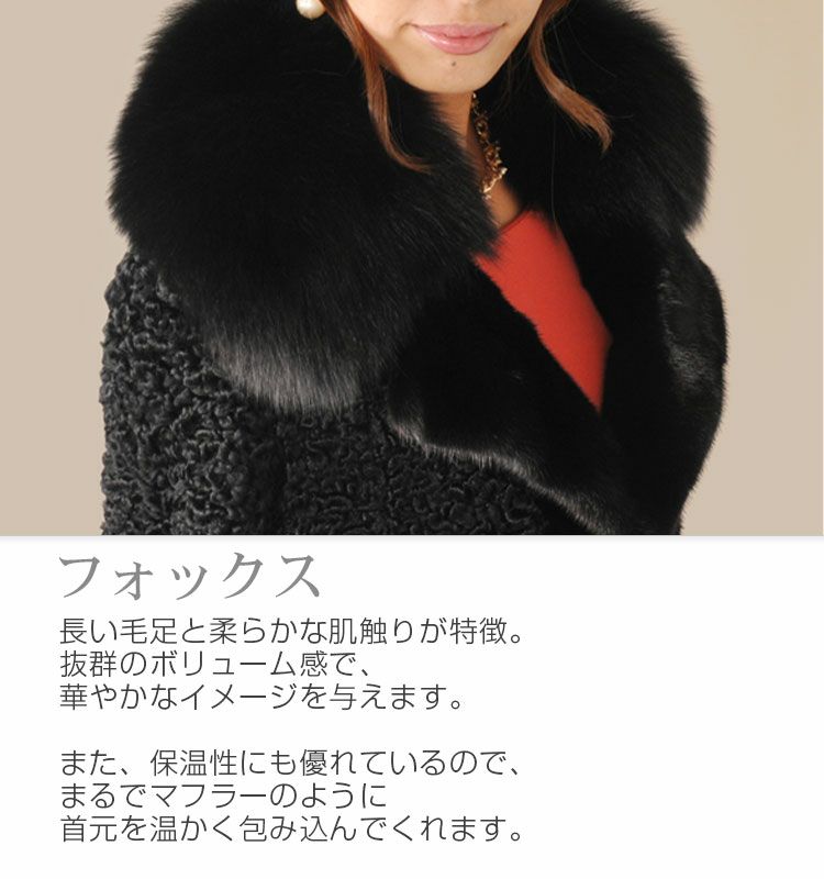 ファー カラクルラム コート フォックス&ミンク トリミング 7F