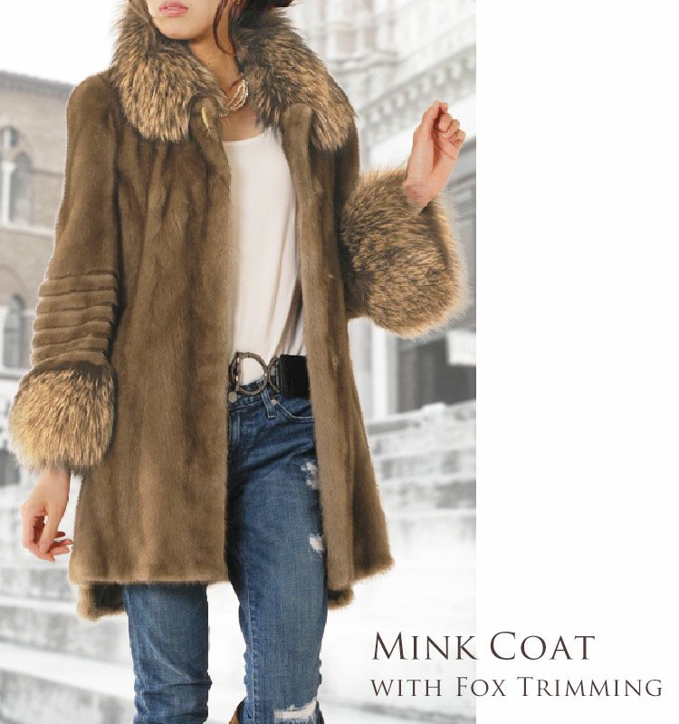 華やかで大人かわいい印象を与える、シルバーフォックスがトリムされたミンクコート。