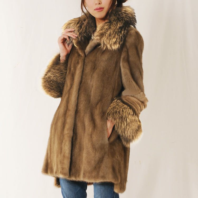 ミンク コート シルバーフォックス トリミング / レディース 毛皮 ファー 7F