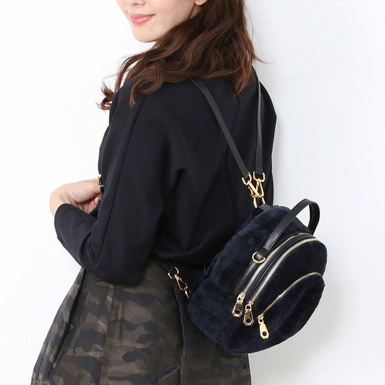 リアルファーのムートンを使用した、コロンとしたシルエットが可愛い上品サイズのリュック。