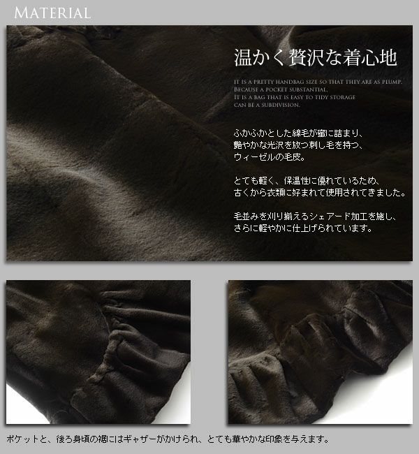 ウィーゼル ギャザー ジャケット カーキブラウン ファー 高級ミンクのBIGセール 7F