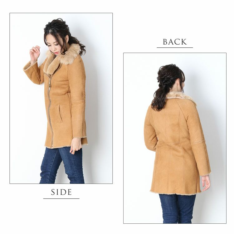 【1点限り】 ムートン Wフェイス ジップアップ コート レディース キャメル 7F
