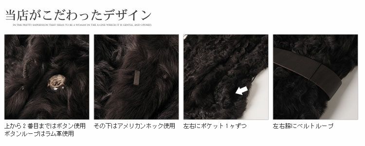 緩やかなウェーブが可愛く、華やかな印象のチキャンラムコート。光沢感があり、動きのある毛質が魅力のチキャンラムを贅沢に使用して仕立てています。柔らかな肌触りで着心地が良く、ウエストから裾に向かって緩やかに広がるAラインシルエットがとても女性らしい雰囲気の一着です。カジュアルスタイルからエレガンスなスタイルまで、幅広く使える汎用性抜群の暖かコートです。