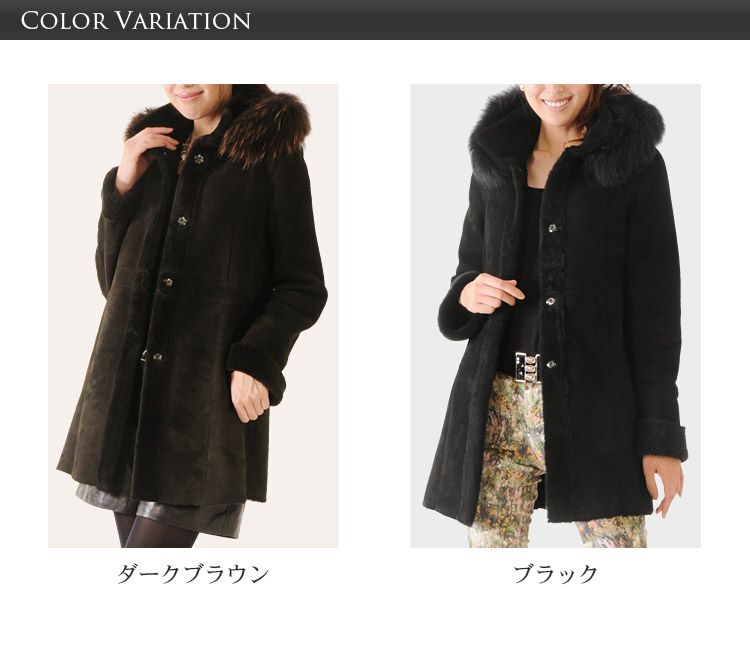 ムートン コート Wフェイス フード付き ラクーン トリミング / レディース 7F