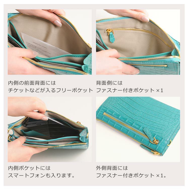 スモール クロコダイル ハンドバッグ レディース ラウンドファスナー シャイニング 両面 センター取り 2WAY バッグ『クロコダイル保証書付き』 4FA