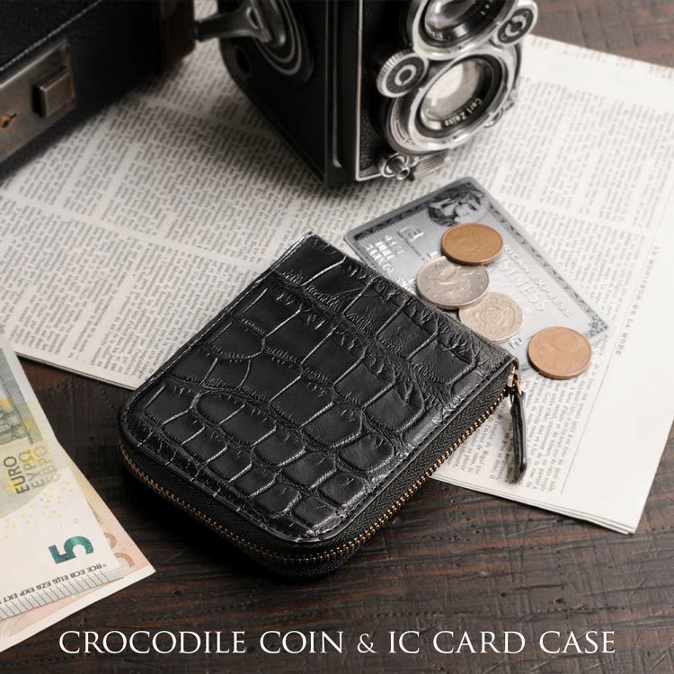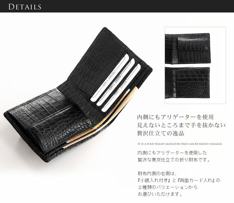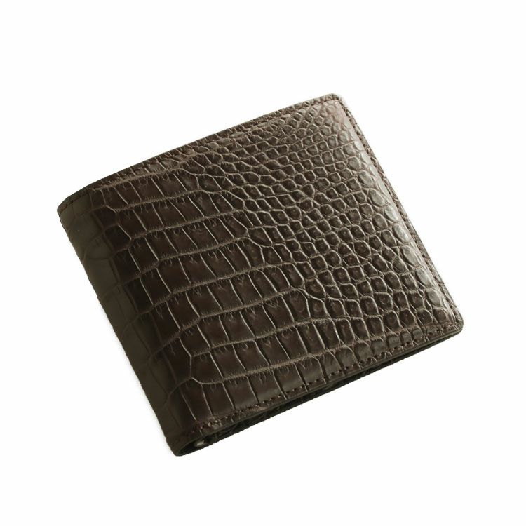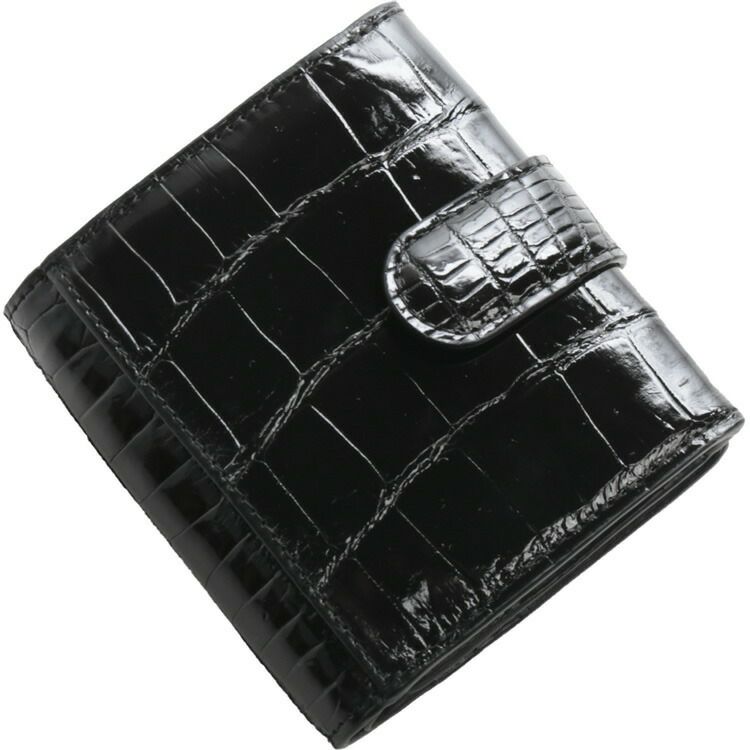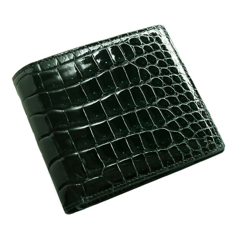 スモール クロコダイル 折り財布 小銭入れなし メンズ シャイニング 加工 センター取り 保証書 付き 4FA(06001065r)