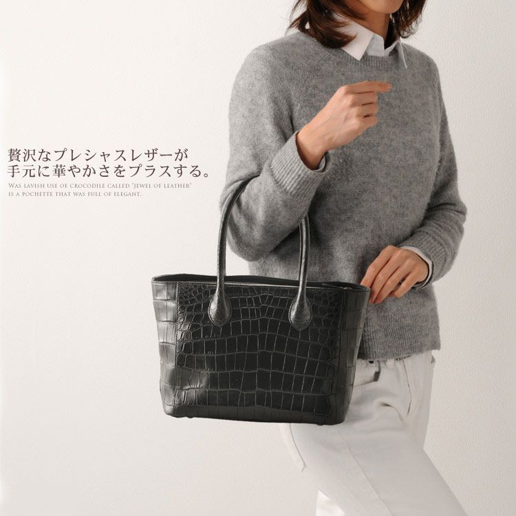 クロコダイル トートバッグ レディース シャイニング 加工 肩掛け あおりポケット 付き 全8色『クロコダイル保証書付き』 4FA