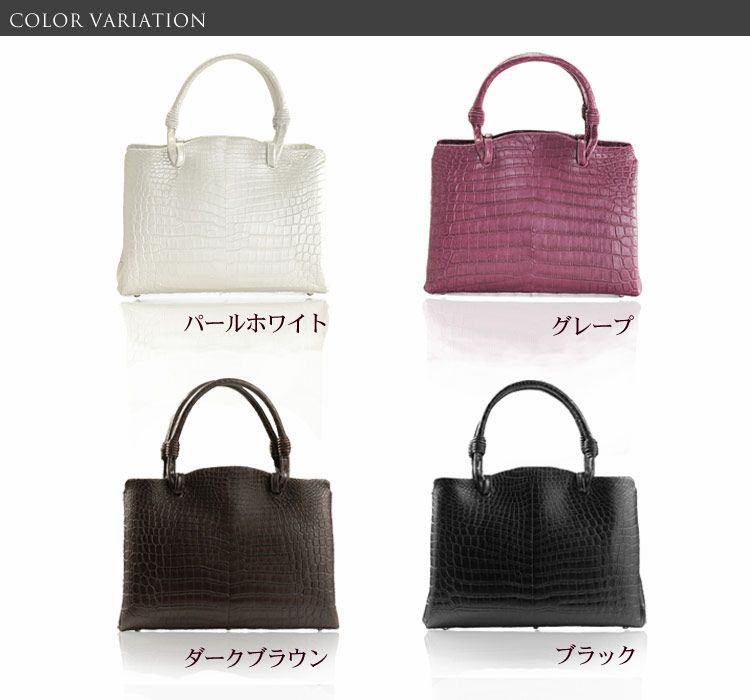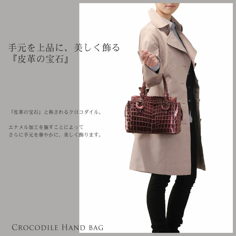 クロコダイル ハンドバッグ レディース 日本製 2WAY ショルダーベルト付き 『クロコダイル保証書付き』 4FA
