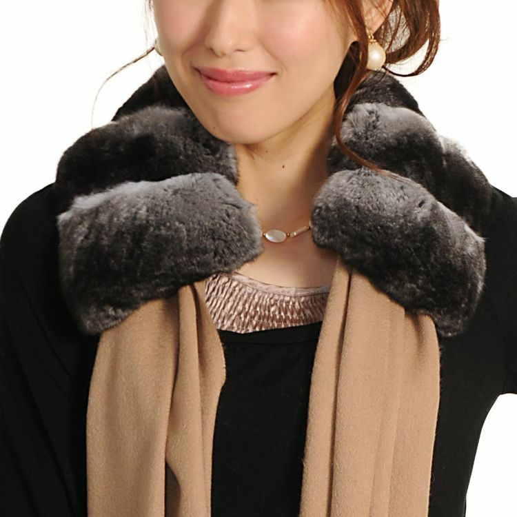 チンチラ ファー マフラー 通し ナチュラル 7F