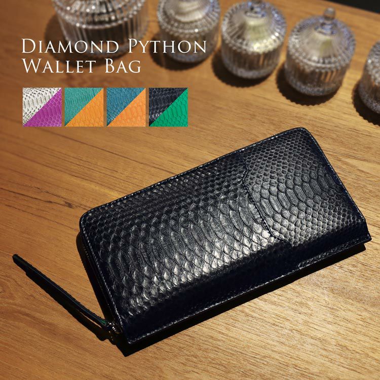 ダイヤモンド パイソン クラッチバッグ 長財布 本革 バイカラー メンズ 4FC