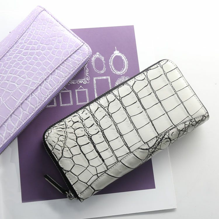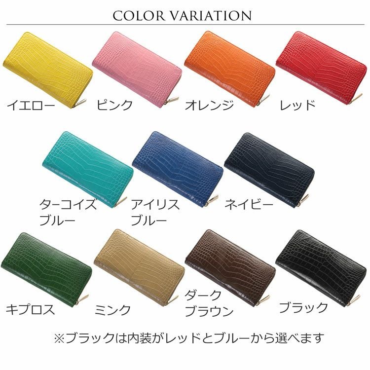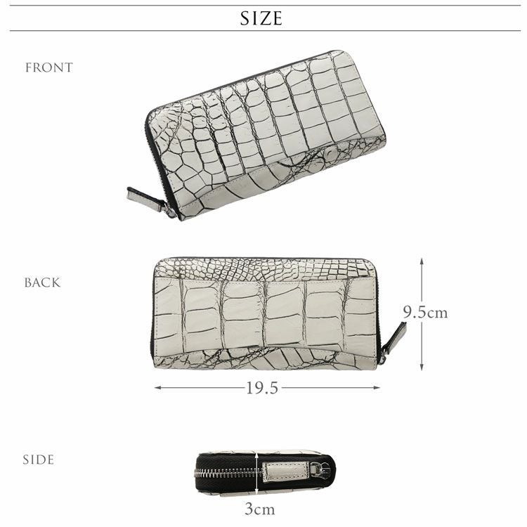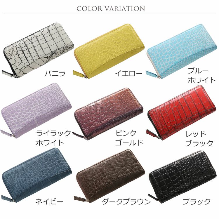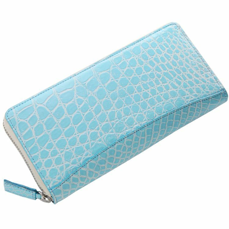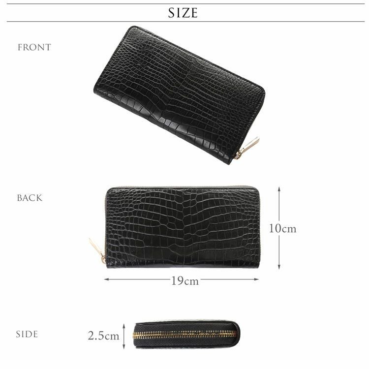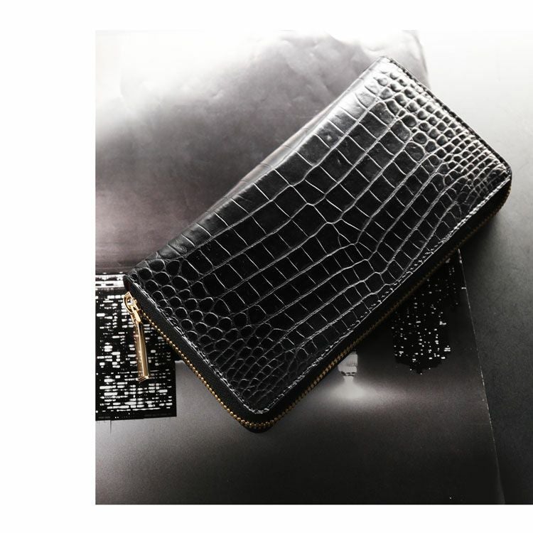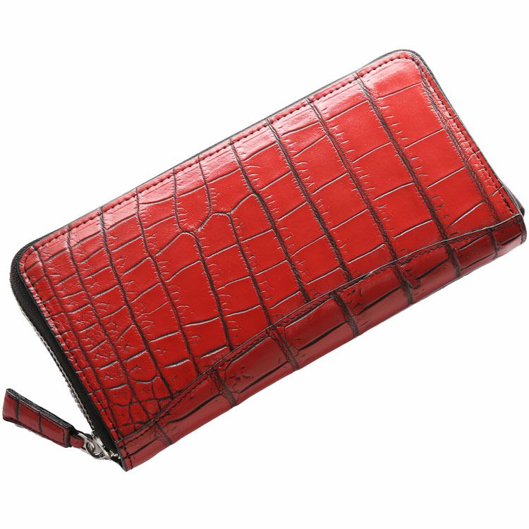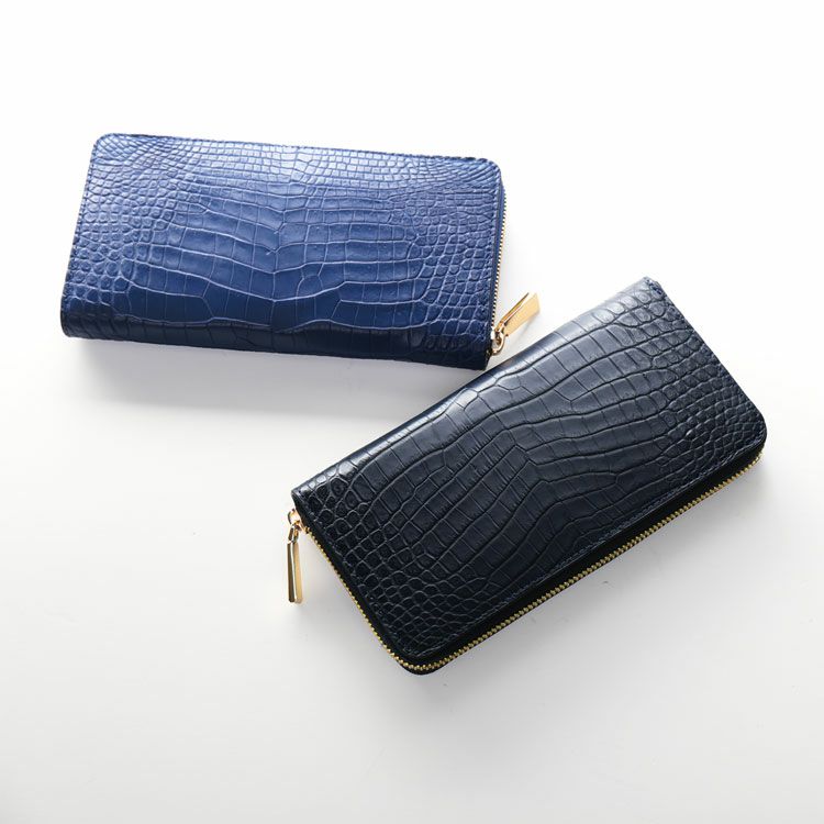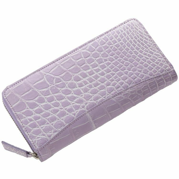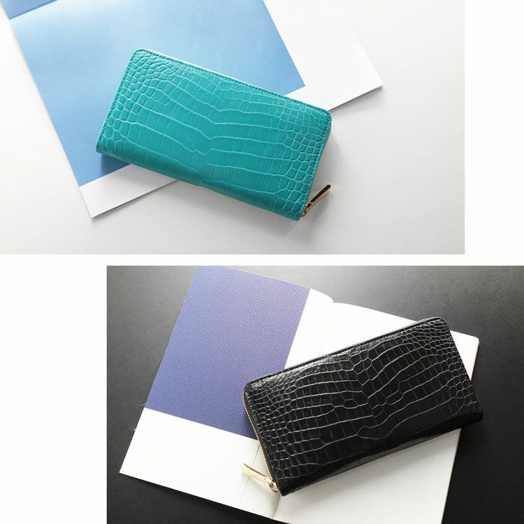 クロコダイル 長財布 ラウンドファスナー レディース センター取り 一枚革 マット 加工 ゴールド金具 4FA