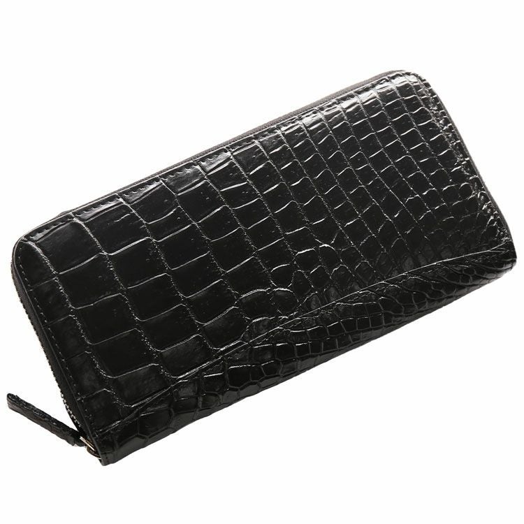 クロコダイル ラウンドファスナー 長財布 メンズ 日本製 財布 鰐革 アウトポケット付き シルバー金具 4FA