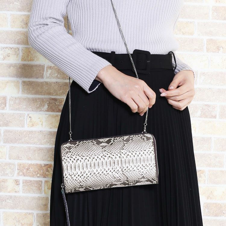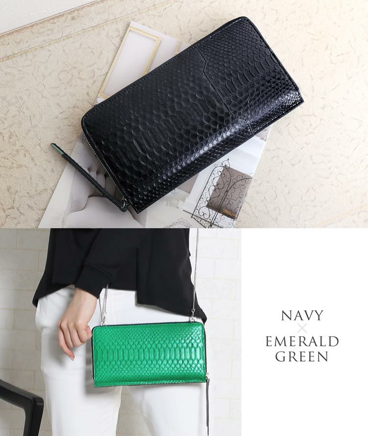お財布 ショルダー バッグ ダイヤモンド パイソン 本革 バイカラー レディース 4FC