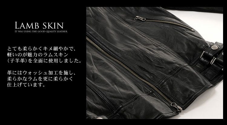 とても軽くてあたたかいラムスキンのメンズライダースジャケット。