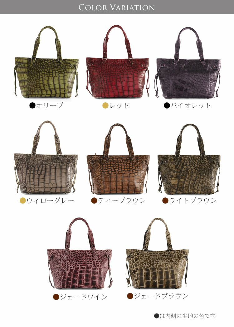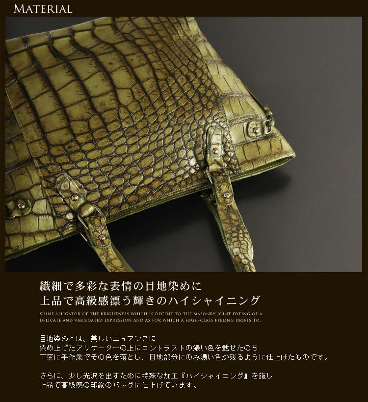 | 商品名:アリゲーター トートバッグ ハイシャイニング 谷染め(目地染め) / メンズ |