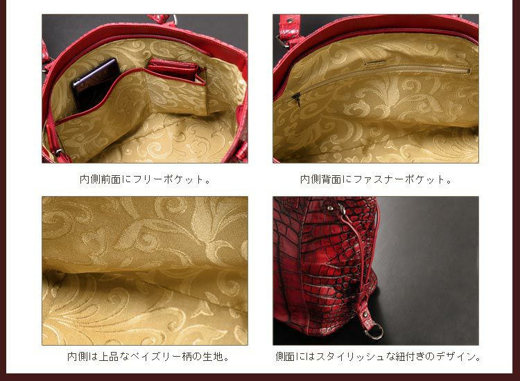 | 素材 | 表地:アリゲーター(目地染め) 内装:生地 |