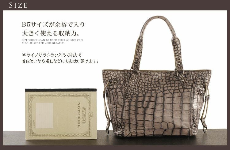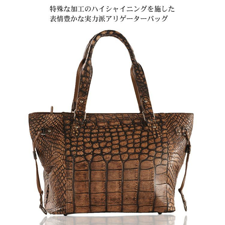 アリゲーター トートバッグ ハイシャイニング 目地染め 『クロコダイル保証書付き』 4FA