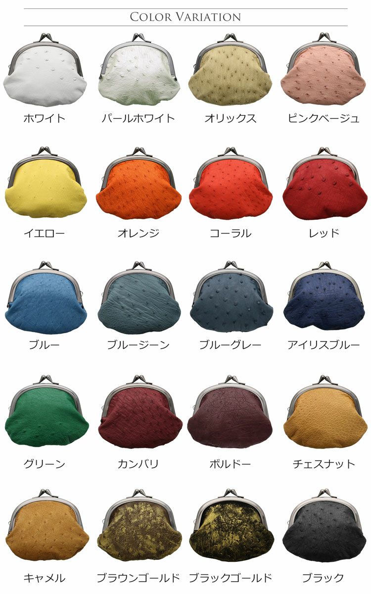 | 商品名:オーストリッチ がま口 財布 日本製 全20色 |