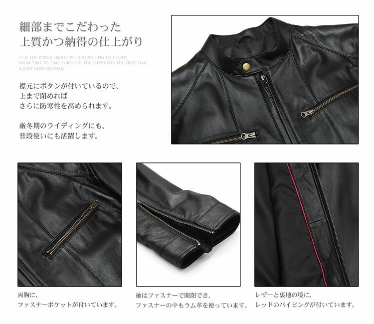 | 商品名:ソフトラム レザー ライダース ジャケット メンズ |