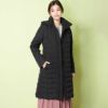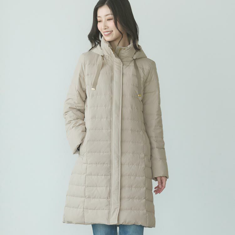 スタンド襟とフードで防風対策、保温性抜群。 適度な広がりのAラインシルエットが女性らしさを印象付けるダウンコート。 フード付きデザインで、デイリーカジュアルに使えます。 ◇ライトベージュ◇ 優しい色合いでやわらかい印象と清潔感のある大人の女性らしい雰囲気を演出。 ◇カーキ◇ ミリタリーな印象のカーキ。上品になりすぎない色合いで様々なスタイルに合わせられます。 ◇ブラック◇ 色んなコーデに合わせやすい定番カラー フードの絞りにはグログランテープを使用しています。 先端の金属パーツが光沢のあるリボンと 相性が良く、オシャレなデザインです。