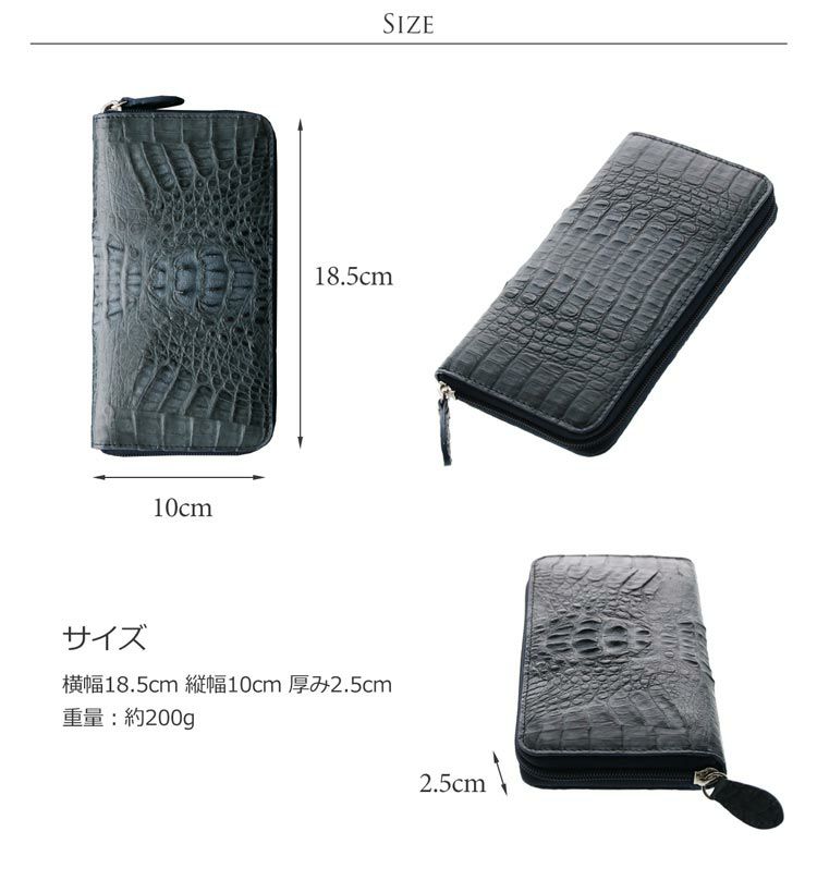 | 商品名:カイマン レザー 長財布 マット加工 ラウンド ファスナー メンズ |