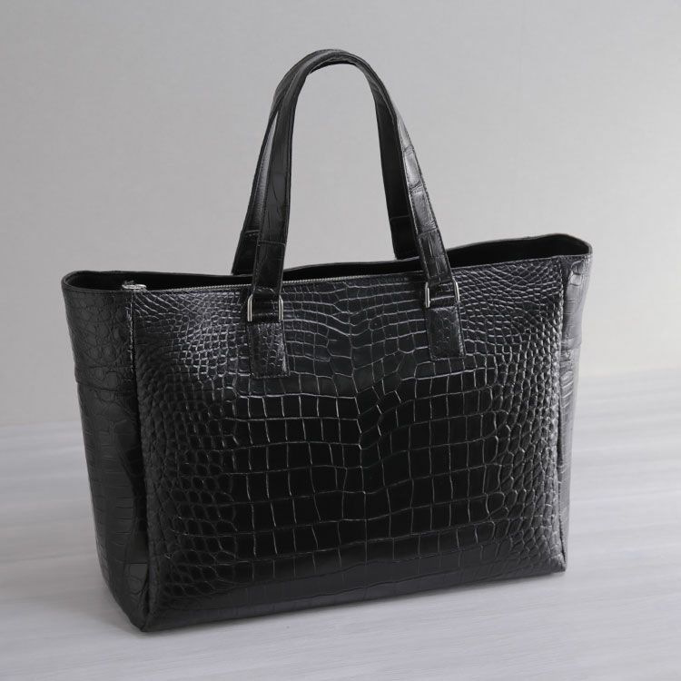 クロコダイル トートバッグ メンズ 日本製 センター取り 幅48cm 肩掛け 自立 ソフト 大きめ 大容量 A4 対応 通勤 オフィス ビジネスバッグ JRA あおりポケット 鰐革 保証書 付き