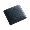 スモール クロコダイル 二つ 折り財布 メンズ マット 加工 一枚革 センター取り 無双 両カード『クロコダイル保証書付き』 4FA