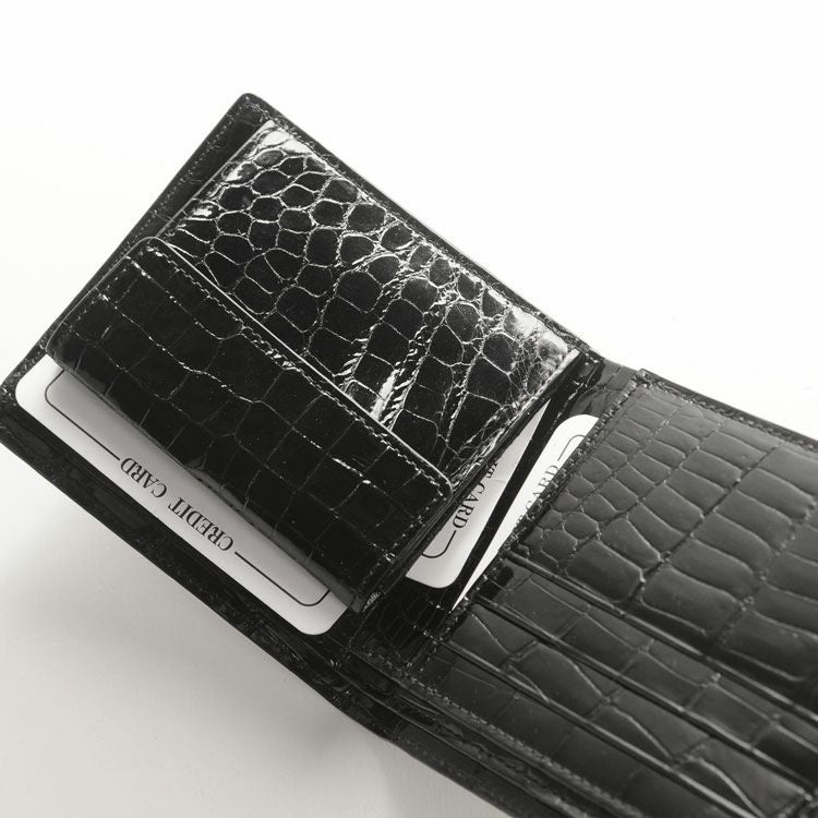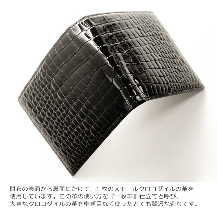スモールクロコダイルで仕立てた二つ折り財布です。