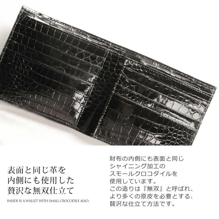天然皮革 エキゾチックレザー スモール クロコダイル 折り財布 メンズ シャイニング 加工 二つ折り財布 薄い 財布 薄型 薄型財布 小銭入れ付き/小銭入れ無し 誕生日 父 保証書付き プレゼント ギフト