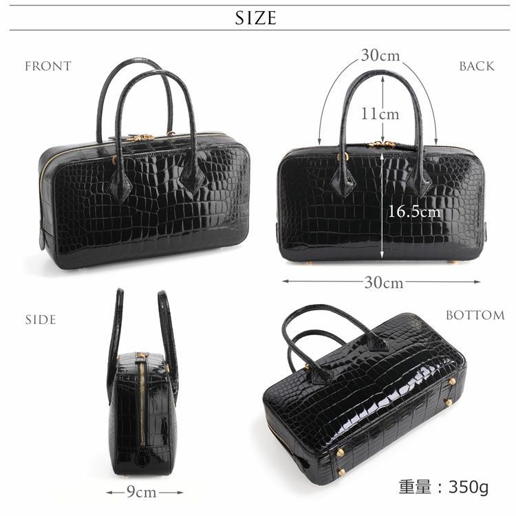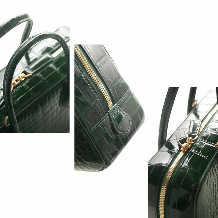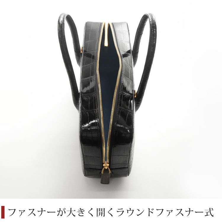 | 商品名:スモール クロコダイル ハンドバッグ レディース ラウンドファスナー シャイニング 両面 センター取り2WAY バッグ ショルダーベルト 保証書 付き |