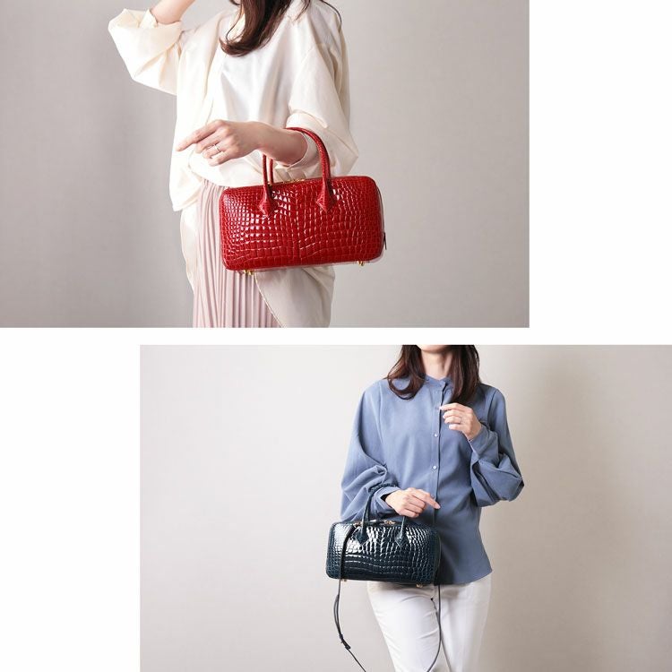 天然皮革 エキゾチックレザー スモール クロコダイル ハンドバッグ レディース ラウンドファスナー シャイニング 両面 センター取り 2WAY バッグ ショルダーベルト 保証書 付き ポロサス スモールクロコダイル 本革 フォーマルバッグ 軽量 軽い ショルダーバッグ プレゼントギフト ladiesbag