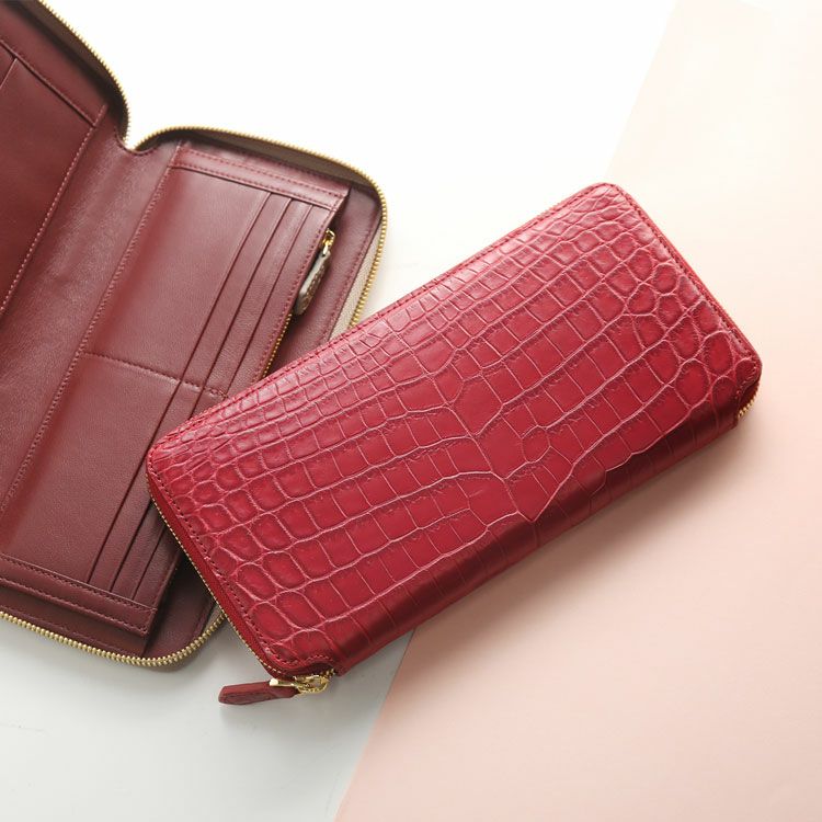 天然皮革 エキゾチックレザー スモールクロコダイル 長財布 レディース 手帳型 マット 加工 ラウンド ファスナー ゴールド 金具 大きめ 財布 レディース 本革 鰐革 ポロサス ネイビー ブラック レッド トープ 保証書 付き プレゼント ギフト