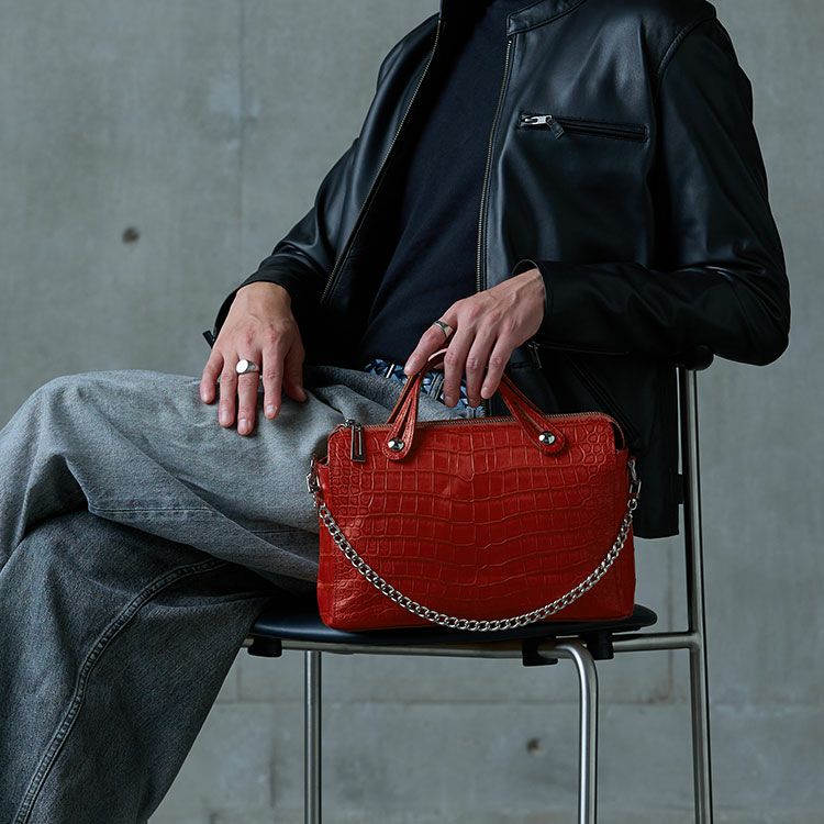 スモールクロコダイルチェーンメンズ2wayバッグ
