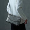 取り外しが可能なシルバーチェーンがデザインされたモダンな印象のメンズバッグ。