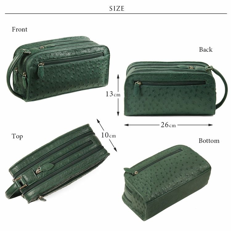 オーストリッチ セカンド バッグ Wファスナー / メンズ 4FB