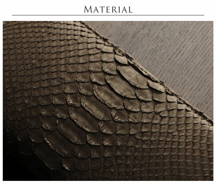 パイソンは、迫力ある表情からは想像できない、繊細で優しい手触りです。加工種類はあまり多くないパイソンですが、素材感を長く楽しむレザー本格派に人気のエキゾチックレザーとなります。スタイルにプラスするだけで、上品な華やかさを添えてくれるアイテムです。