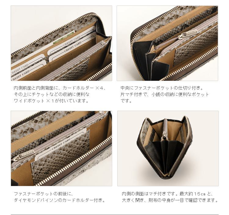 | 素材 | 表/ダイヤモンドパイソン 内側/ダイヤモンドパイソン、シャンタン |