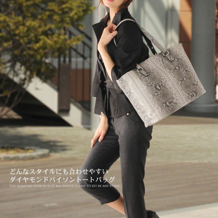 大きめサイズのダイヤモンドパイソンのトートバッグ。