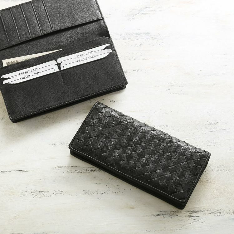繊細な表情が魅力のパイソンを 1本1本丁寧に編み込んで使用しました。 パイソンの革はとても軽く、 見た目からは想像もできない優しい肌触りです。 編み込んで使用することで他にはない 表情豊かなお財布に仕上がっています。 取り出しやすい 縦型のカードホルダーや、 マチ付きの紙幣入れ、 領収書やチケットの収納に役立つ ワイドポケットなど、 役立つ機能をシンプルに まとめたアイテムです。
