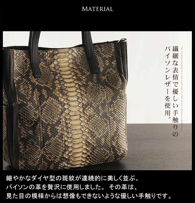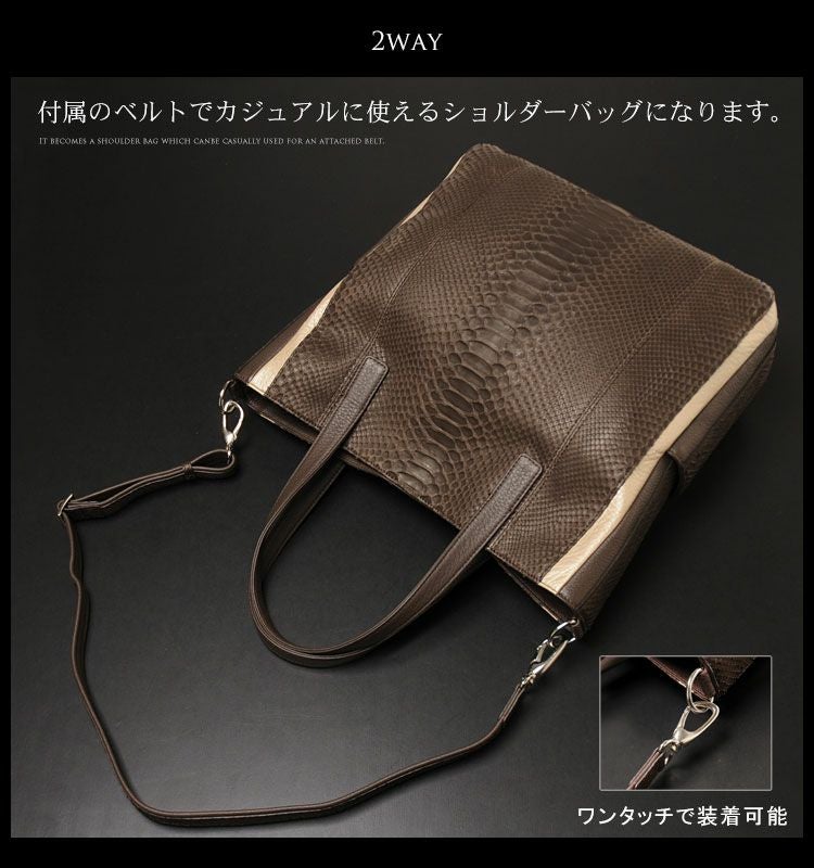 パイソン & 牛革 トートバッグ 日本製 ショルダーバッグ(No.06000464-mens-1) |